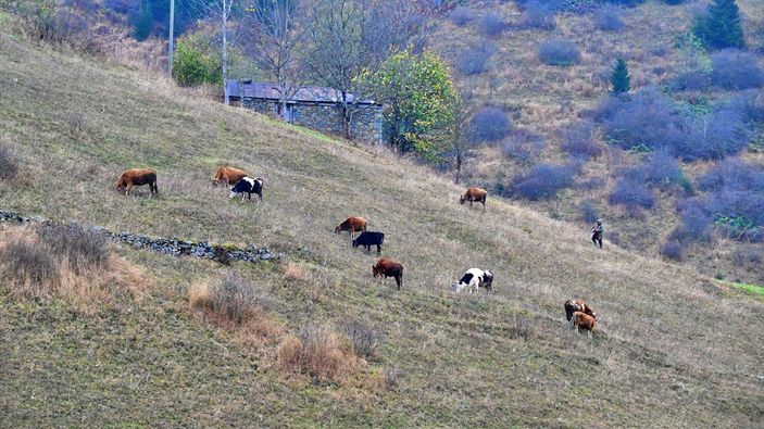 Trabzon’un Maçka ilçesinde yer alan Saveriksa Yaylası, sonbaharın son günlerinde hâlâ hayvanlarını otlatan besicilerin hareketliliğine ev sahipliği yapıyor.