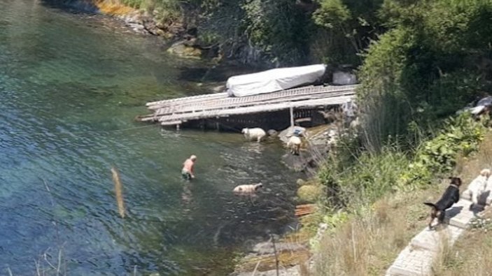 Havaların sıcaklığının insanları etkilediği kadar hayvanları da etklimesi besiciyi serinlemek için yöntem bulmaya itince, hem koyunlarını yüzdürdü hem de kendisi yüzdü.