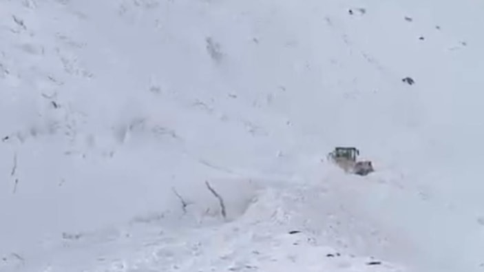 Yol açma çalışmaları sırasında kepçe operatörünün yaralı kurtulduğu çığ anına dair görüntüler ortaya çıktı.