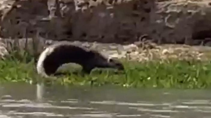 Şırnak'ın Cudi Dağı eteğinde bulunan İkizce Deresi'nde nesli tükenme tehlikesi altındaki su samuru görüntülendi.
