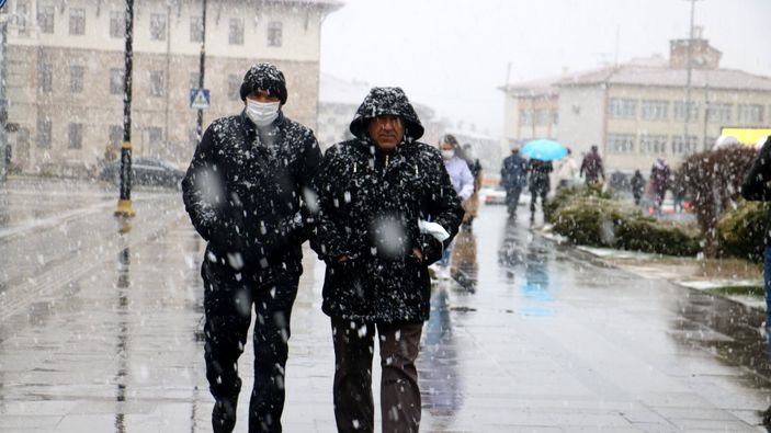 Hava sıcaklığının 20 derece birden düştüğü Sivas'ta, nisan ayının ortasında kar yağdı.
