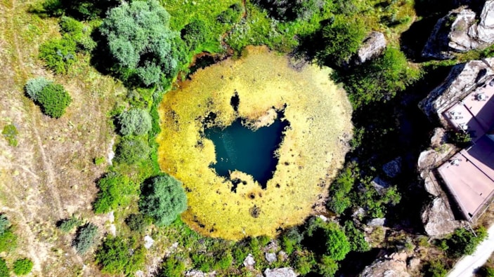 Sivas'ın Doğanşar ilçesinde yer alan Dipsizgöl, yüzeyini kaplayan yosunlarla adeta timsah gözünü andırıyor.