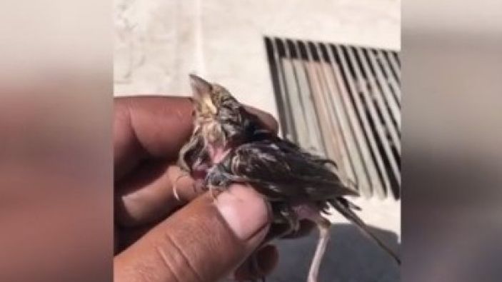 Suya düşen serçenin hayatını kurtardılar VİDEO