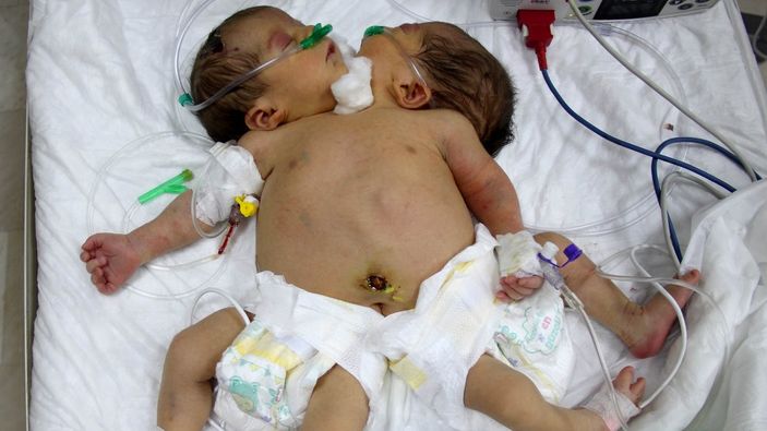 "İki ayakları var her ikisinin de, ikisinin de birer kolu var, kafaları var fakat gövdeden ikisi de orta hattan birleşmiş durumdadır. Geldiklerinde solunum sıkıntıları yoktu ama biz oksijen desteği vermeye devam ediyoruz. Dolaşımları veya tansiyonları ile ilgili büyük bir sıkıntımız yok. Hastanemizde, siyam ikizlerinin EKO’su yapıldı, tomografileri çekildi, görüntüleme yöntemleri yapıldı, iç organları ile ilgili problemleri araştırıyoruz.”