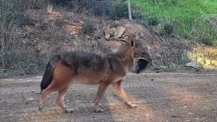 Tekirdağ'da ağzında domuz bacağı taşıyan çakal görüntülendi
