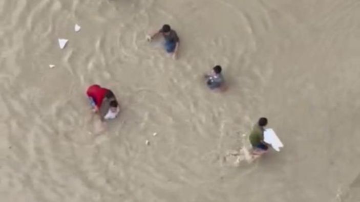 Tekirdağ'da çocuklar sel sularında yüzdü VİDEO