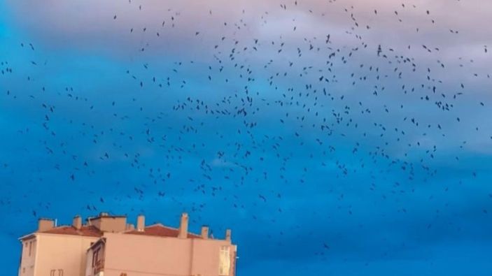 Tekirdağ'da gökyüzündeki karga istilası kameraya yansıdı