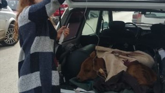 Burada yapılan muayenenin ardından sindirim sistemi bozukluğu yaşadığı belirlenen buzağıya, aracın bagajında serum bağlanarak ilaç verildi.