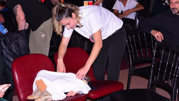 Dünya Boks Şampiyonası'nda görevli hakem Nazan Savaş, müsabaka esnasında tribünde uyuyakalan, lösemi tedavisi gören oğlu Alp Rüzgar’ın yanına koşarak üzerini örttüğü anlar, görenleri duygulandırdı.