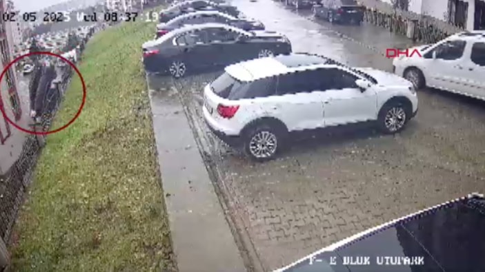 Fren ve gaz pedalını karıştıran T.Ş.'nin otomobili, sitenin bahçesine düştü. O anlar kameraya yansırken, sürücü T.Ş. ile oğlu kazadan yaralı kurtuldu.