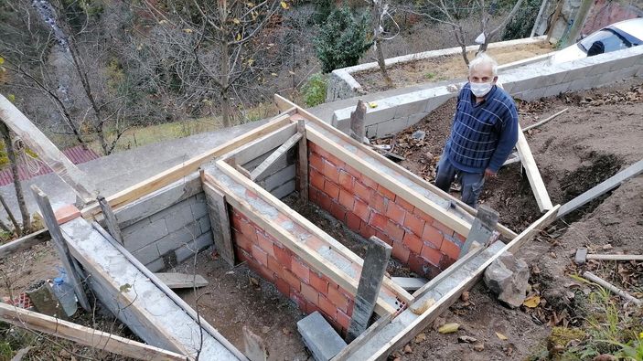 Koronavirüs nedeniyle hayatını kaybetme endişesi yaşayan bir vatandaş, evine ulaşımın zor olduğunu belirterek, "Salgın var ölebilirim. 'Ölümüm, kimseye zahmet olmasın' diye mezarımı kazdım." dedi.