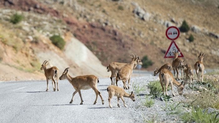 Yüksek rakımlı sarp dağlarda yaşamlarını sürdüren koruma altındaki yaban keçileri de yiyecek bulmakta zorlandığı için sık sık yerleşim yerlerinin yakınına kadar iniyor.