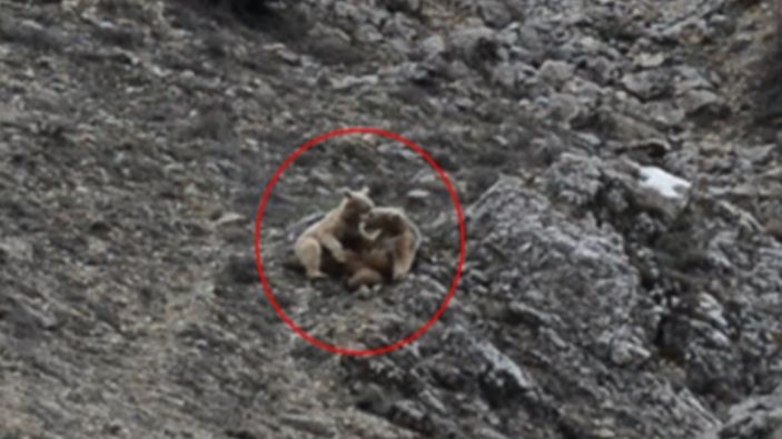 Tunceli'de kış uykusundan uyanan ayılar, oyun oynadı VİDEO