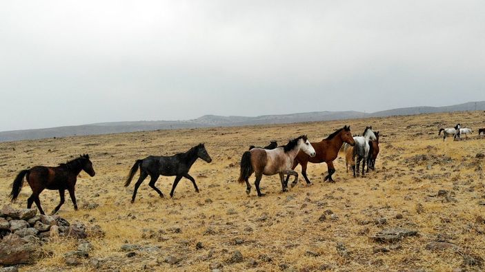 Gruplar halinde dolaşan atlar, su ihtiyaçlarını da Reşo Deresi kenarına kadar inerek karşılıyor.