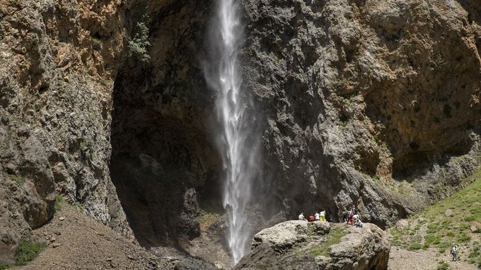 Yüksek rakımdaki karların erimesiyle mevsimlik akan şelaleler, Kurban Bayramı tatilini fırsat bilen gezi gruplarının uğrak yeri oldu.