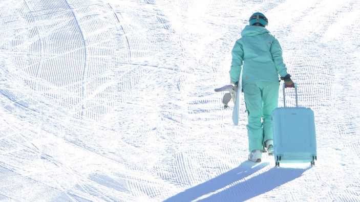 Kış turizminin gözde merkezlerinden olan Palandöken'de Ukraynalı bir turist, bavul ile snowboard yapınca çevredekilerin dikkatini çekti.