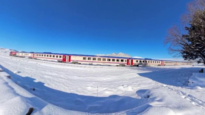Yolculuk boyunca karlı dağların ve beyaz örtüyle kaplı arazilerin eşliğinde ilerleyen Van Gölü Ekspresi, yolcularına görsel bir şölen sunuyor.