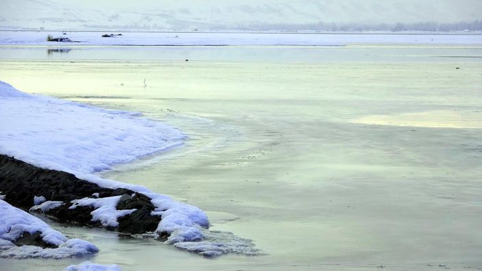 Soğuk hava hayatı olumsuz etkilerken, Türkiye’nin en büyük sodalı ve tuzlu gölü olan Van Gölü de bu soğuklardan nasibini aldı.