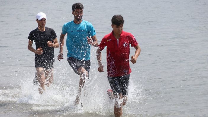 Van Gölü kıyısında antrenman yapan lise öğrencisi Kadir Ünal, atletizmde 3 kez Türkiye şampiyonu olarak önemli bir başarıya imza attı.