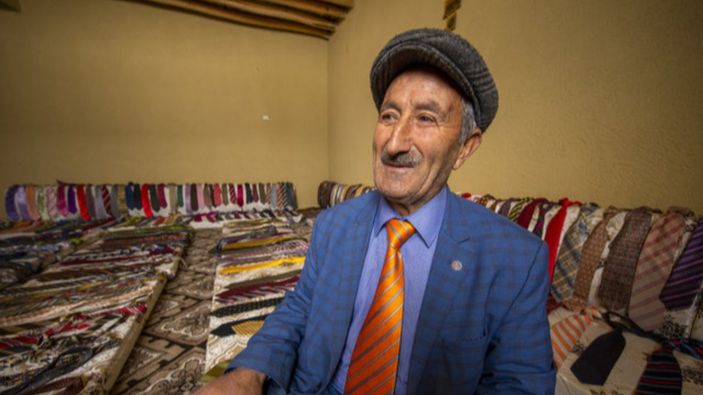 Gürpınar ilçesinde adının verildiği mezrada oturan 70 yaşındaki Bedir Akbulut, 63 yılda biriktirdiği 1500 kravatı hayatının ayrılmaz bir parçası haline getirdi.
