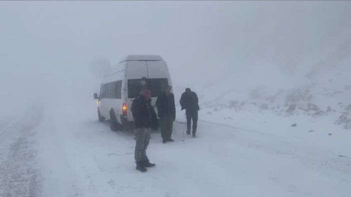 2 bin 985 rakımlı Karabet Geçidi karla kaplandı. Seyir halindeki sürücüler kar yağışına hazırlıksız yakalanınca zor anlar yaşandı.