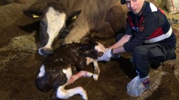 Yaşlı kadının ineğinin doğumunu jandarma yaptırdı