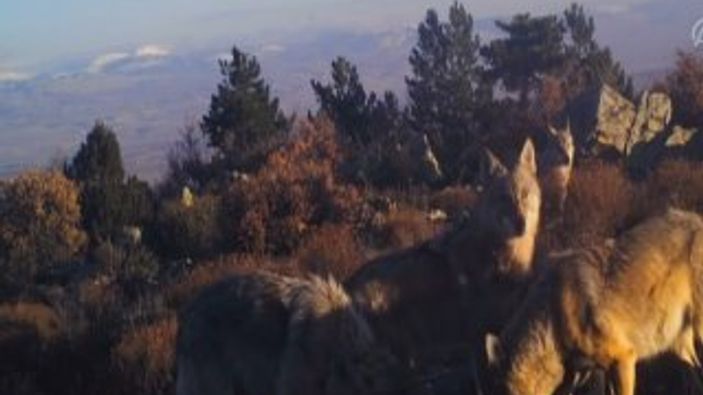 Afyonkarahisar Akdağ Tabiat Parkı'nda kurulu fotokapana, kurt sürüsü ile tilki, kızıl şahin ve akbabanın avlarını yeme görüntüleri takıldı.