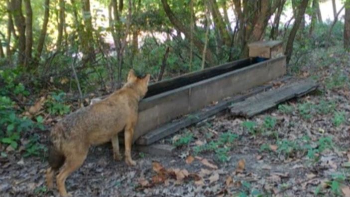 Bölgedeki fotokapanlar, bu kez sıcakta susayan bir çakalın yalaktan kana kana su içmesini kaydetti.