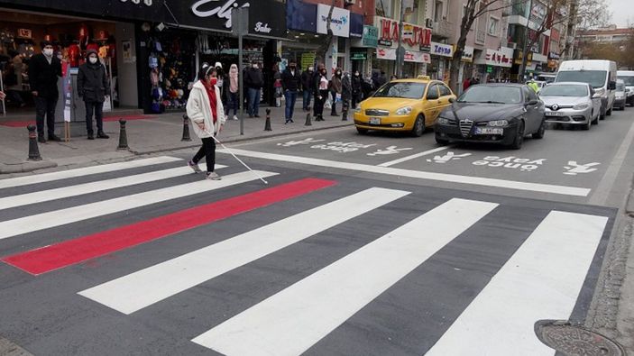 Ana güzergahlar üzerindeki ışıksız yaya geçitlerinde bulunan yaya çizgilerinden bir tanesi, kampanya etkinliği çerçevesinde sembolik olarak kırmızıya boyanacak.