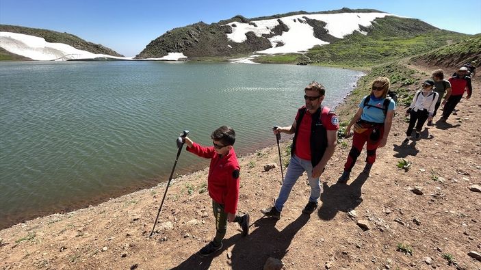 Yayla Dağı zirvesindeki göle 7 kilometrelik yürüyüşle ulaştılar
