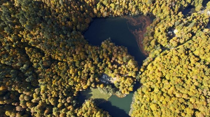 Bolu'daki Yedigöller Milli Parkı, sonbaharın tüm renkleriyle ziyaretçilerini büyülüyor...