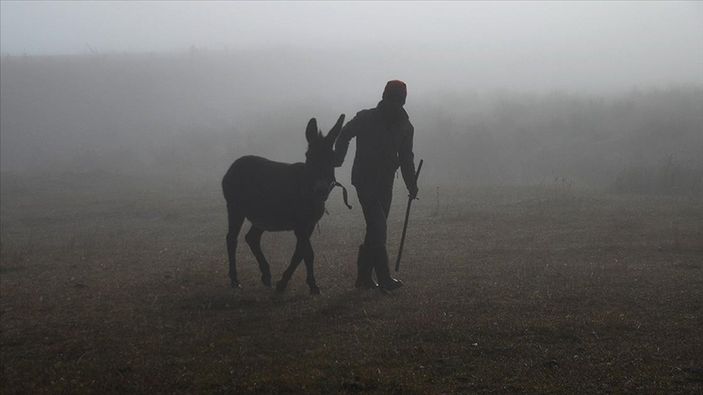İlçede hayvanlarını otlatan çobanlar da sisten dolayı zor anlar yaşadı.