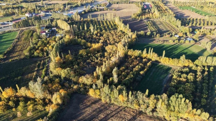 Ağrı Dağı’nın kuzey eteklerinde, Iğdır’ın Melekli beldesinde yer alan İrem Bağları, sonbaharın gelişiyle birlikte adeta renklerin dans ettiği bir tabloya dönüştü.