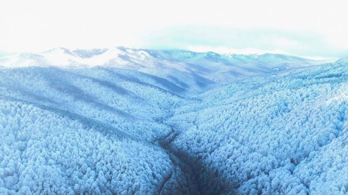 İnegöl'ün Boğazova bölgesinde kar yağışı etkili oldu. Ormanlık alanlar beyaza büründü. Muhteşem manzara drone ile havadan görüntülendi.