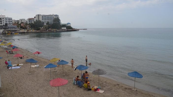 Yerli turistlerin bir bölümünün turistik kentten ayrılması plajlardaki yoğunluğa da yansıdı. Sıcaklığın 30 derece olarak ölçüldüğü kentte, uygun havaya rağmen plajlar boş kaldı.
