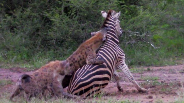 Zebranın sırtlanlara av olma anı kamerada VİDEO