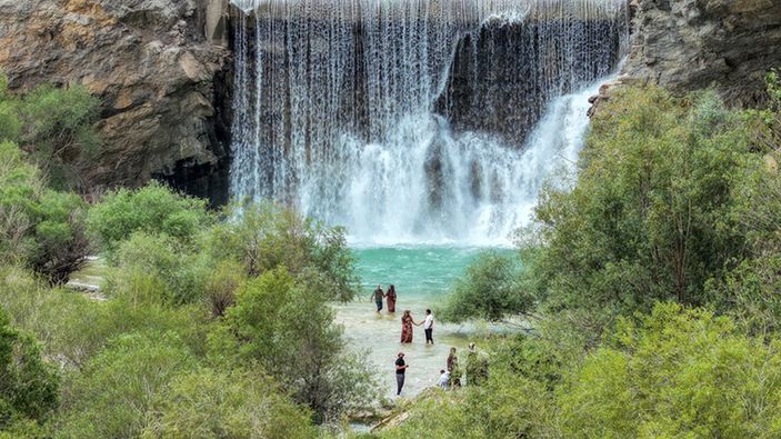 Van'da yağışların etkisiyle su seviyesi yüzde 100'e ulaşan Zernek Barajı'nda su tahliyesinde kullanılan kanalın sonundaki yapay şelale, vatandaşlardan ilgi görüyor.