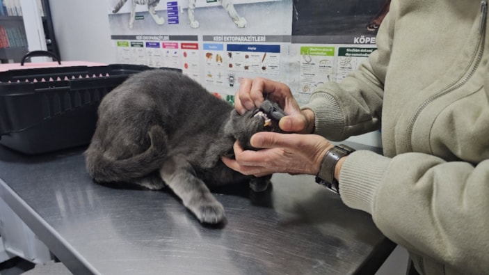 Veteriner kliniğinde çalışan Neslihan Uzun’un kedisinin dişi kırıldı.