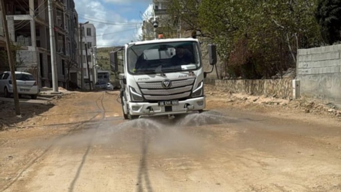 Belediye, sosyal medya paylaşımında, "Mazıdağı Belediyesi, artan toz ve kirliliği önlemek amacıyla ilçedeki cadde ve sokaklarda sulama aracıyla temizlik çalışması yaptı" ifadelerini kullandı.