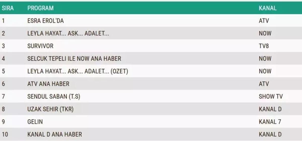 İzleyiciler, dün akşamın reyting sonuçlarını merak ediyor. Peki dün akşam en çok izlenen dizi ve programlar hangileri?