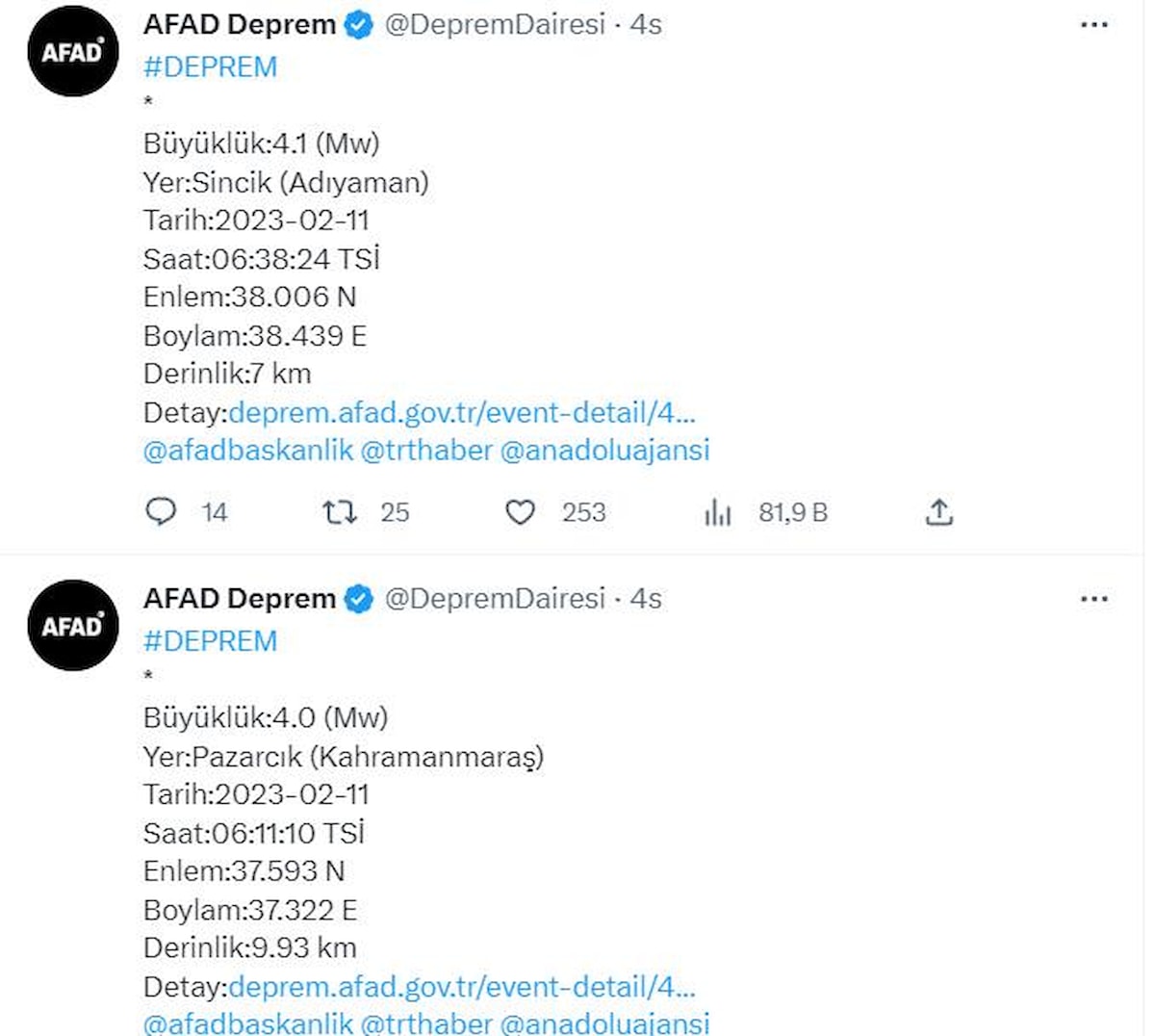 Yüzyılın felaketi olarak adlandırılan depremin beraberinde günlerdir artçılar meydana gelirken, gözler AFAD son dakika depremler listesinde...