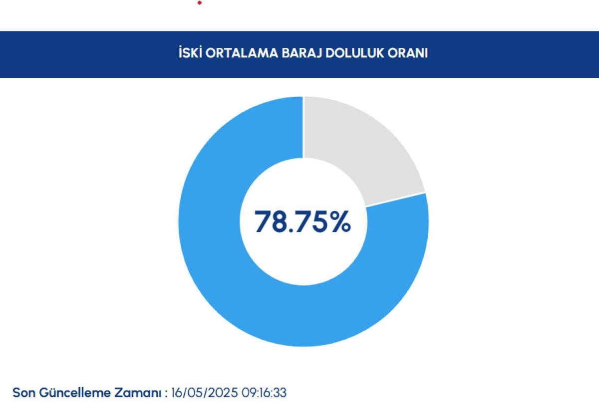 İstanbul'da bulunan tüm barajlardaki su miktarının 16 Mayıs 2025 Cuma günü itibariyle % 78.75 olduğu açıklandı.
