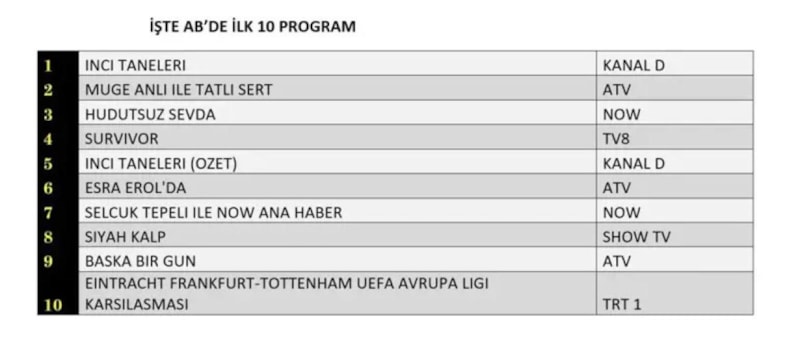 İzleyiciler, dün akşamın reyting sonuçlarını merak ediyor. Peki dün akşam en çok izlenen dizi ve programlar hangileri?