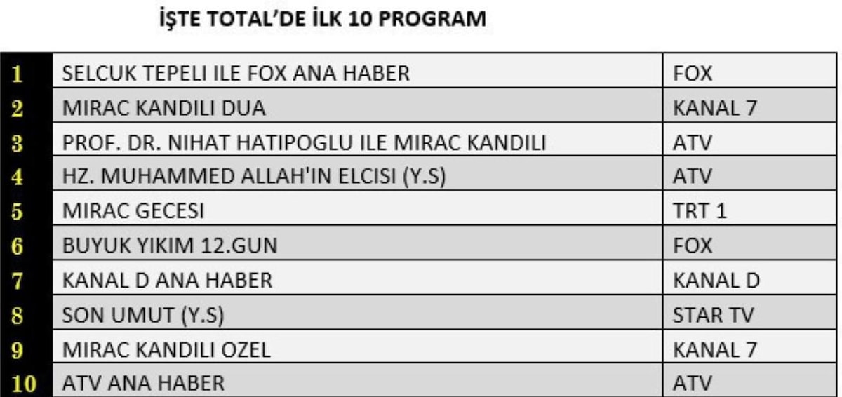 TOTAL'DE İLK 10 PROGRAM