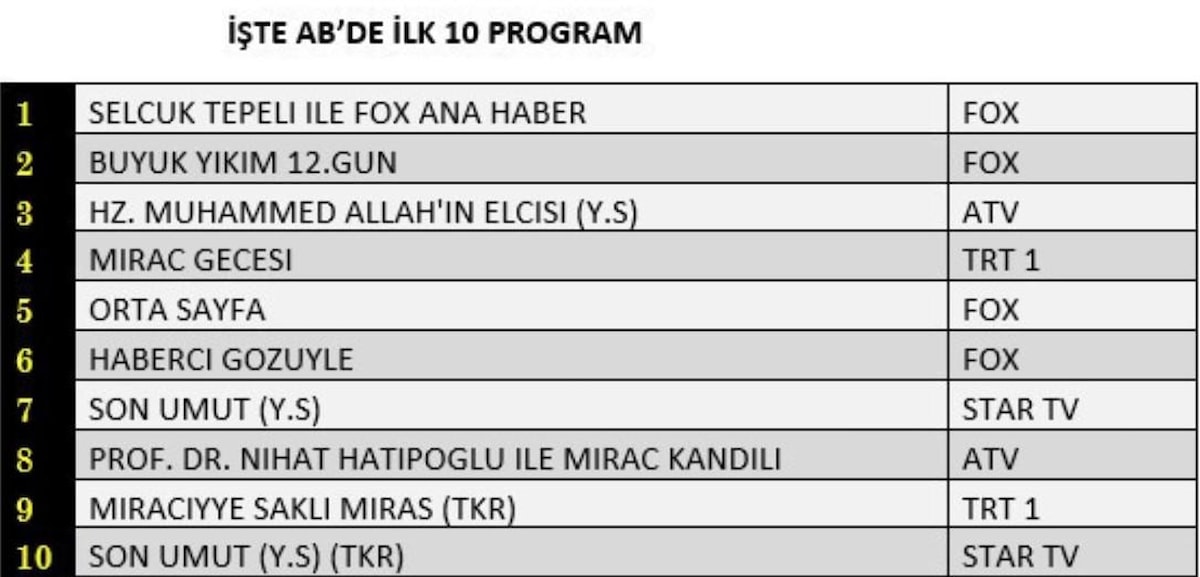 AB'DE İLK 10 PROGRAM