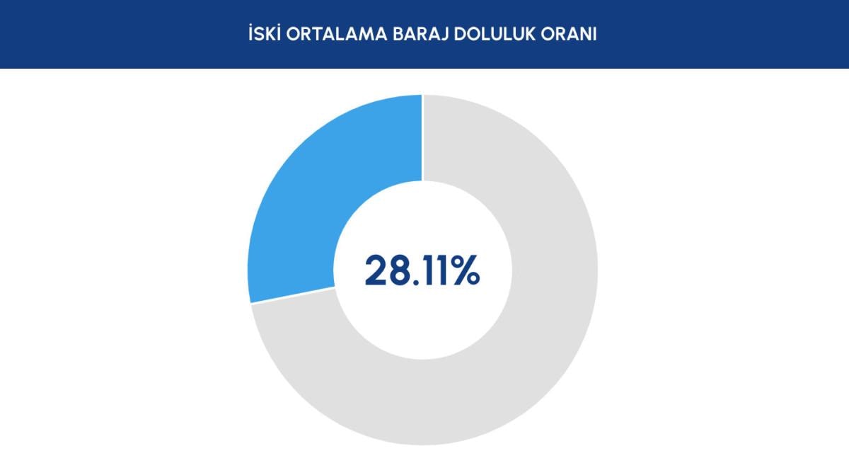 İstanbul'da bulunan tüm barajlardaki su miktarının bugün itibariyle %28.11 olduğu açıklandı.