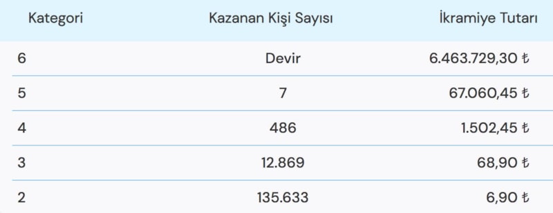 İşte bu akşam gerçekleştirilen çekiliş sonuçlarına göre ikramiye kazanan kişi sayısı ve kazandıkları ikramiye miktarları..