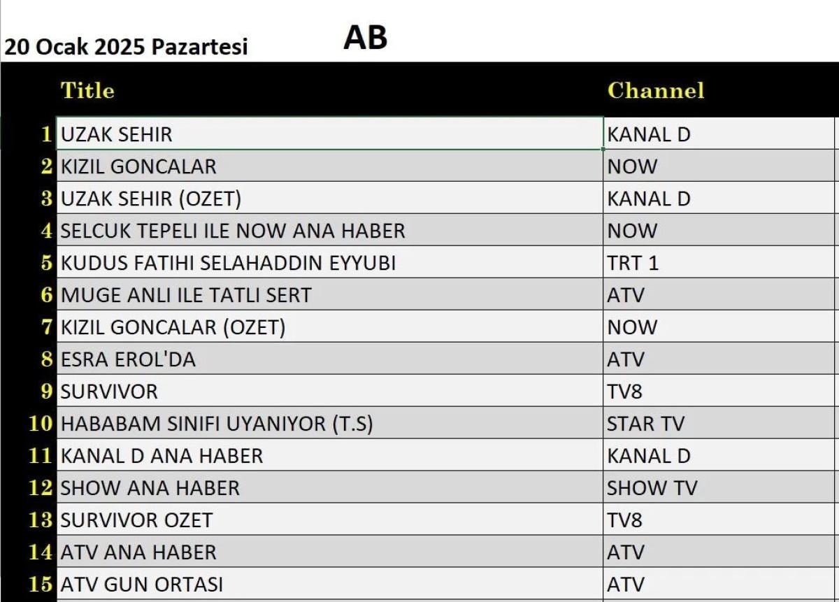 20 OCAK PAZARTESİ REYTİNG SONUÇLARI