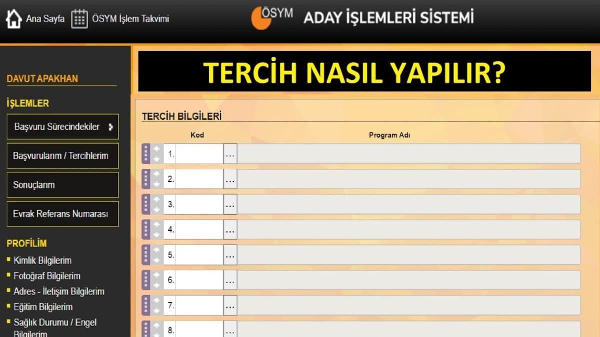 YKS tercih işlemleri 27 Temmuz-8 Ağustos tarihleri arasında alınacak. Tercih işlemleri ÖSYM AİS üzerinden T.C. kimlik numarası ve aday şifresiyle gerçekleştirilecek.