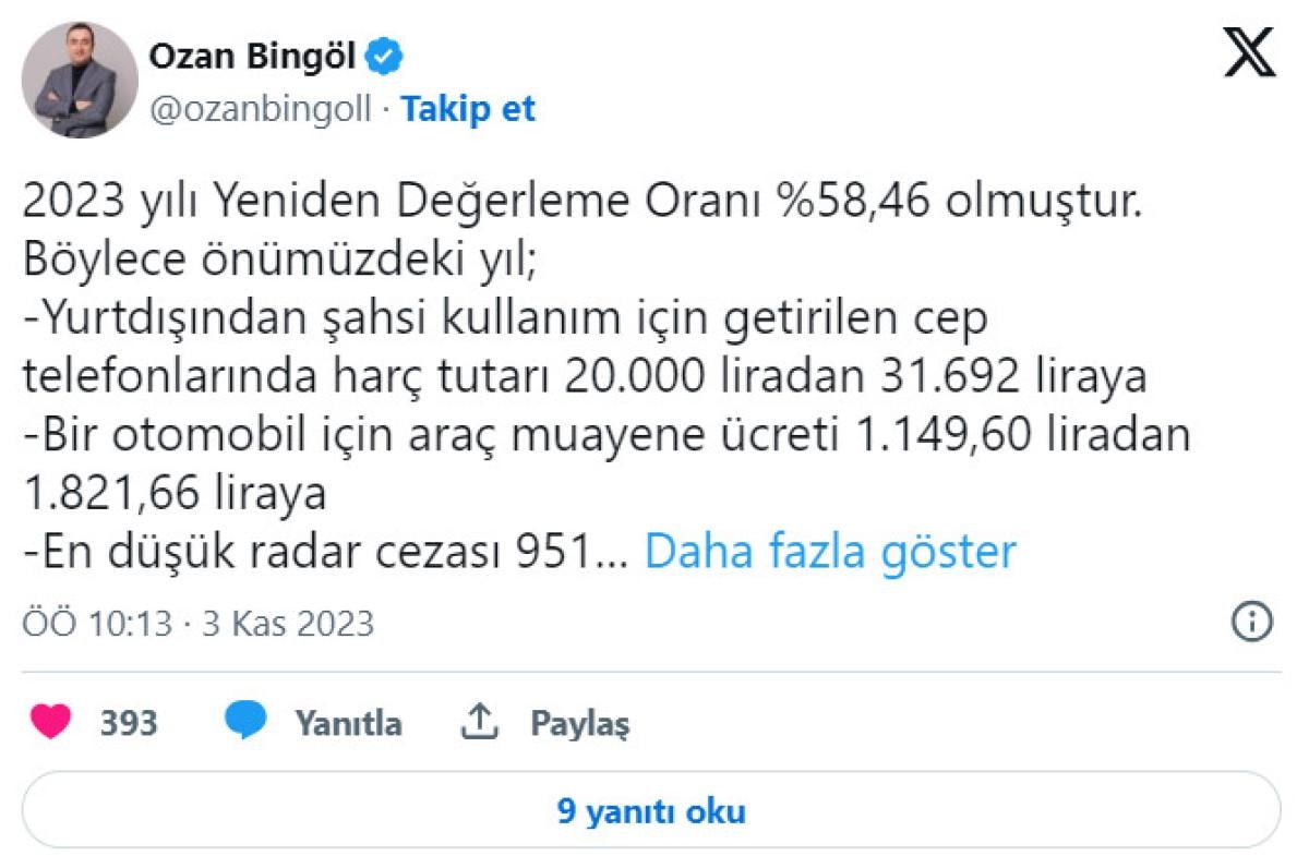 2024 yılında yurt dışından getirilen telefonların kayıt ücreti 31.692 TL'ye çıkacak. Ozan Bingöl sosyal medya hesabından yaptığı açıklamada şu sözlere yer verdi: